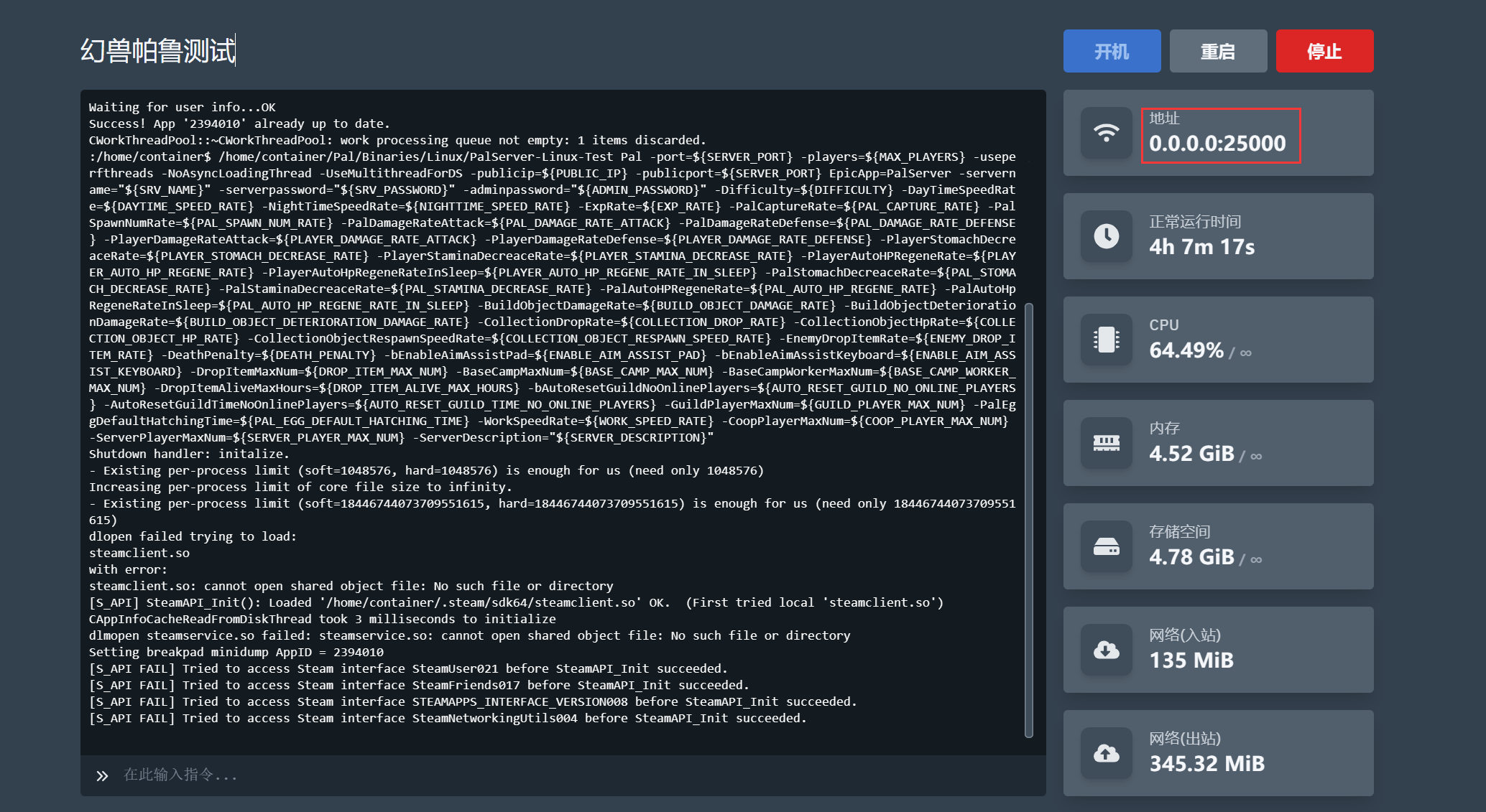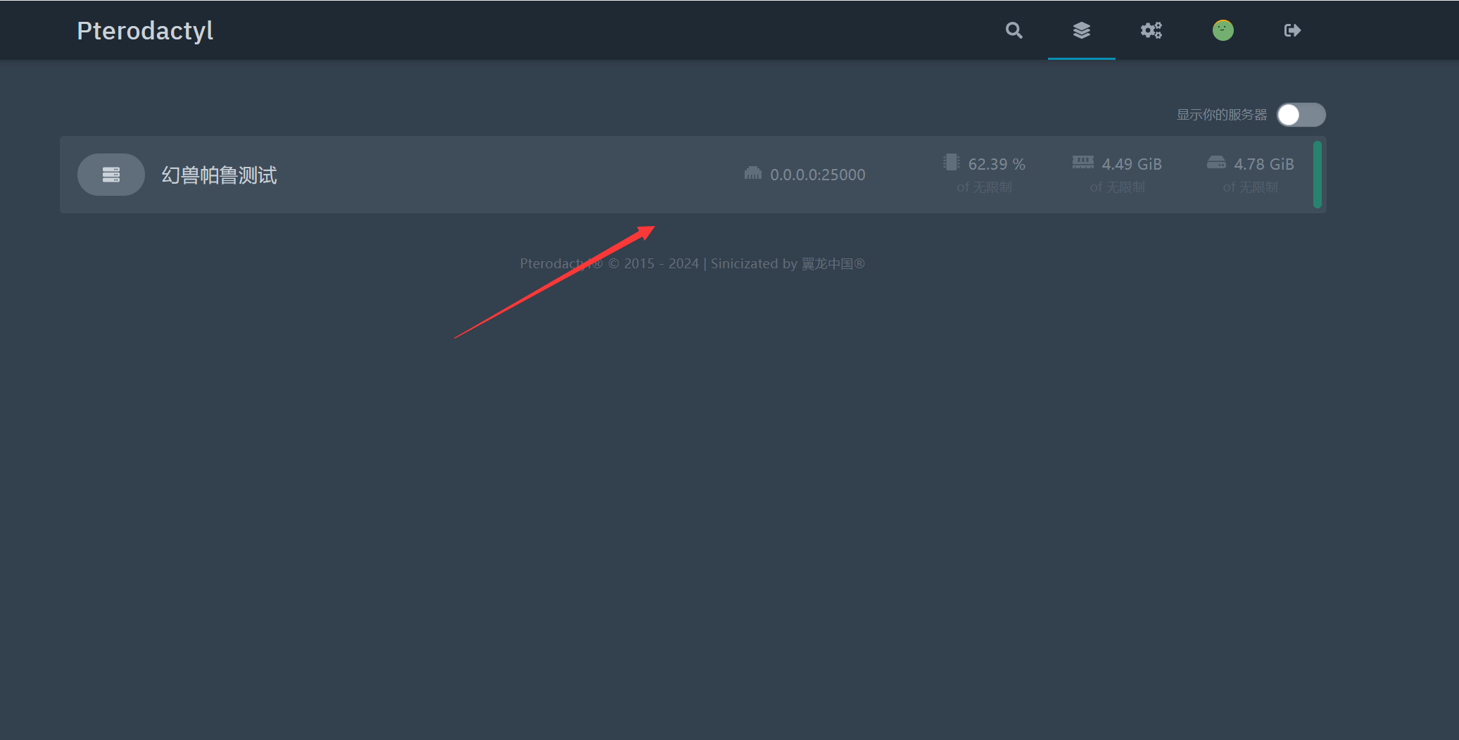 1、首先登录面板,然后点击服务器进入管理面板。